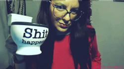 - Scat in un bagno pubblico - Ho appena finito la spesa e sono in giro vicino alla mia macchina. Ho davvero voglia di un caffè ma come ben saprai se mi conosci sono allergia al lattosio: mi causa dei crampi terribili e dei dolori acuti. Entro nel bar ed ordino un marocchino con latte: parlo un pò con la ragazza dietro al bancone e dopo un paio di minuti devo correre in bagno! Arrivata nel bagno mi rendo conto che la porta è rotta e non riesco a chiuderla: sai bene che odio chiudermi dentro a dei bagni che non conosco e qui ci sono ben due serrature! Faccio finta di mettermi le lenti a contatto e lascio la porta aperta: ma il dolore allo stomaco è terribile. Allora ti lascio posizionato sul lavello mentre corro sul wc ma non faccio tempo ad arrivarci. Uso le mani per raccogliere quello che ho fatto dentro alle mutandine e me lo caccio direttamente in bocca. Ti ricordo che la porta è aperta e non chiusa e potrebbe arrivare chiunque! Mastico e salutando tutti esco dal bar... camminando ti mostro cosa c'è dentro alla mia bocca. Wow!